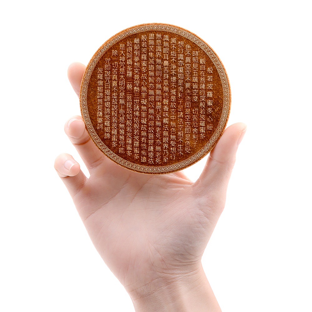 芬多森林 獨家特賣 松木 心經圓牌立座 般若波羅蜜多心經 心經擺飾 心經圓盤 化煞 保平安 經文擺件 實木製作 雷雕代工