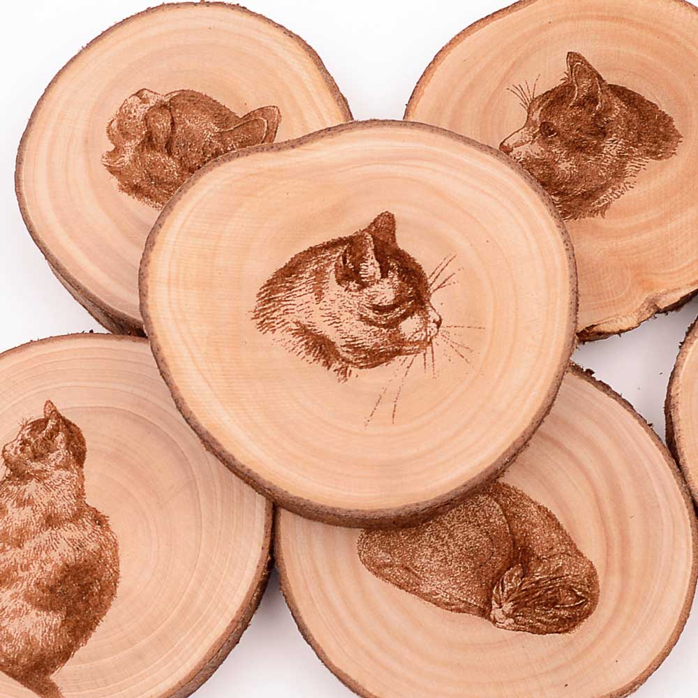 芬多森林 肖楠杯墊 貓咪杯墊 附發票 天然肖楠原木 台灣肖楠 可愛貓咪 貓杯墊 實木杯墊 隔熱墊 客製刻字 雷射雕刻