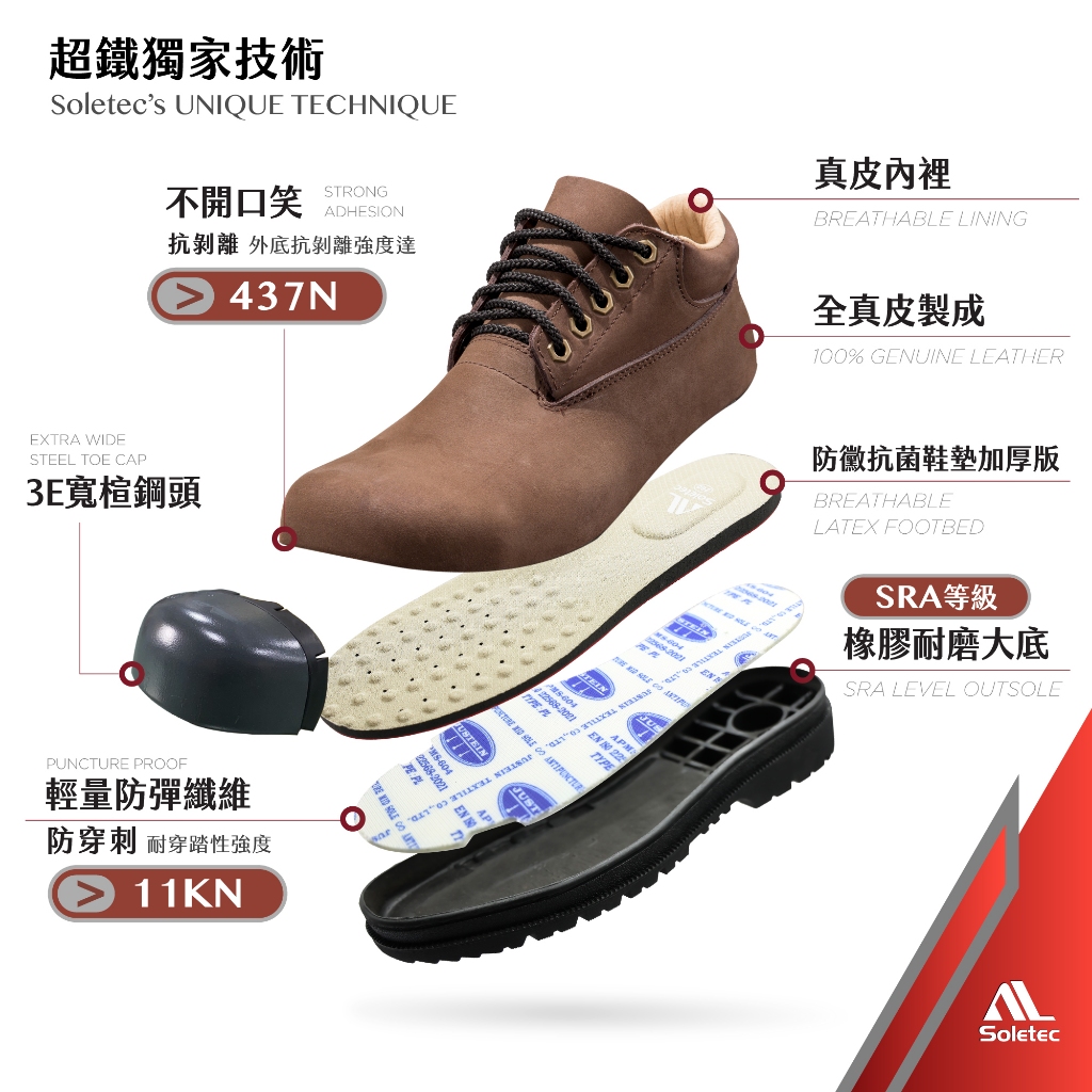 【Soletec超鐵安全鞋】S172535 真皮寬楦安全鞋 CNS20345防穿刺+耐電壓