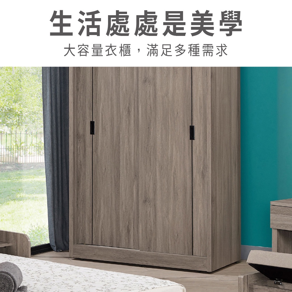 ASSARI-拉比灰橡4尺推門衣櫃(寬121x深60x高200cm)