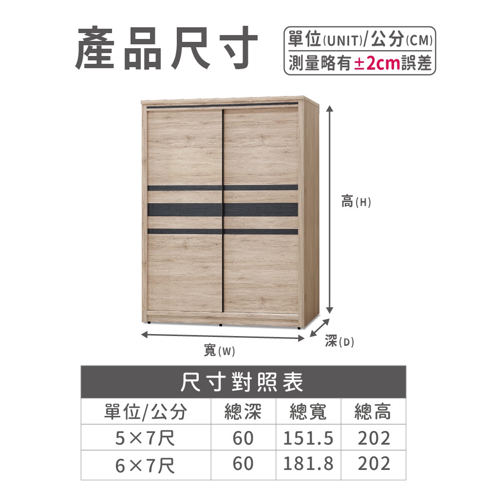 ASSARI-梵帝岡6x7尺推門衣櫃(寬181.8x深60x高202cm)