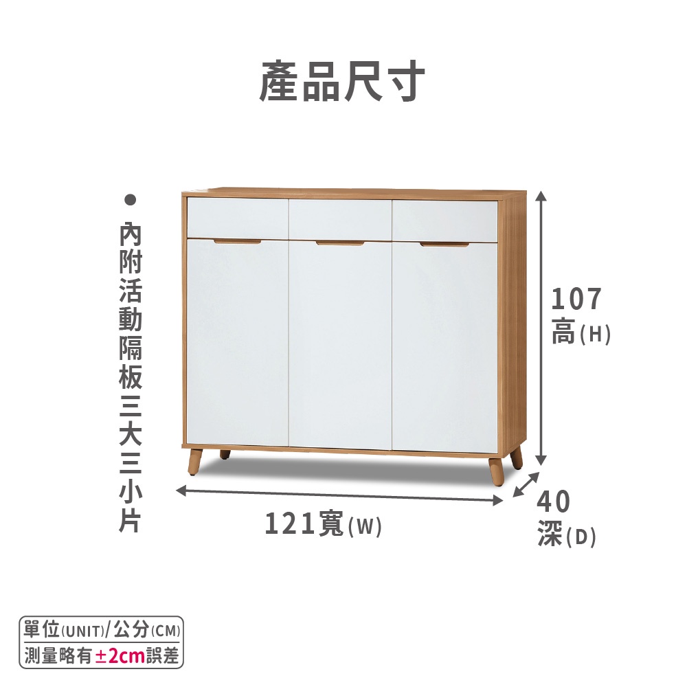 ASSARI-肯詩特烤白雙色4尺鞋櫃(寬121x深40x高107cm)