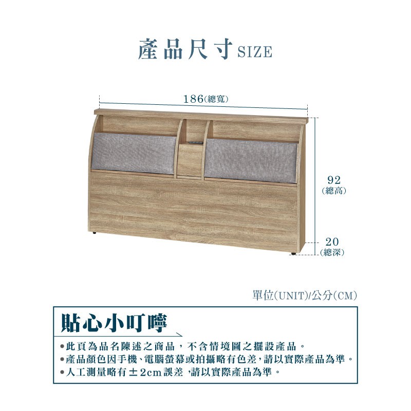 ASSARI-杉原收納插座布墊床頭箱-單大3.5尺/雙人5尺/雙大6尺