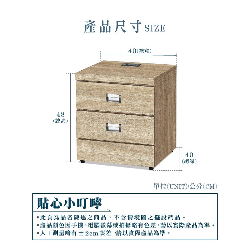 ASSARI-安德插座床頭櫃(寬40x深40x高48cm)