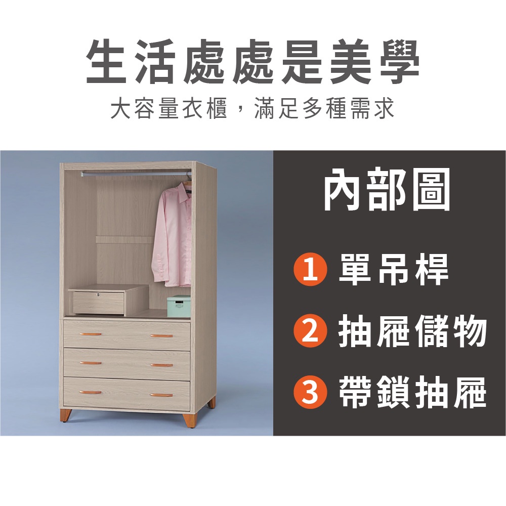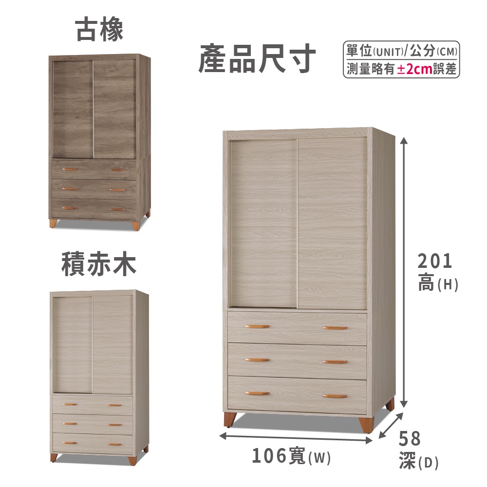 ASSARI-艾力3.5尺推門衣櫃(寬106x深58x高201cm)