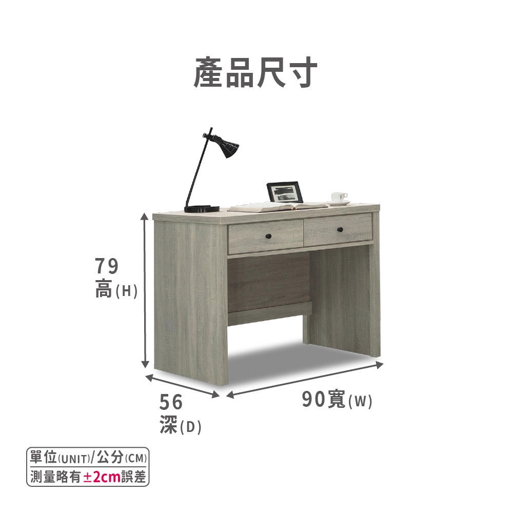 ASSARI-米奇淺灰3尺書桌(寬90x深56x高79cm)