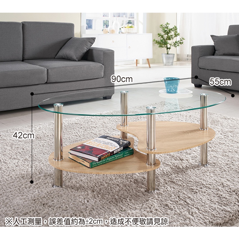 ASSARI-芬娜玻璃茶几(寬90x深55x高42cm)