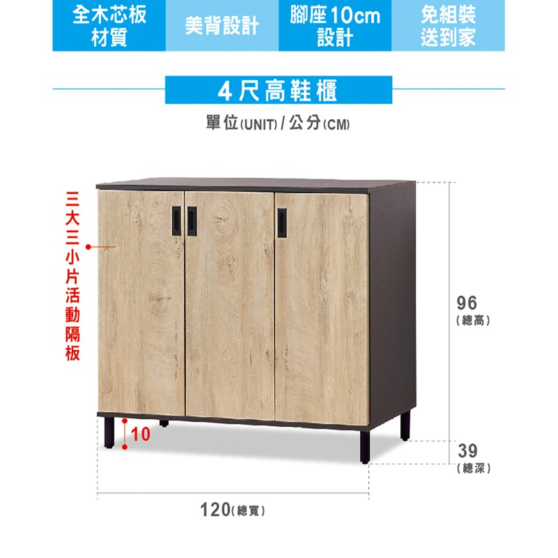 ASSARI-卡斯特原切色4尺鞋櫃(寬120x深39x高96cm)