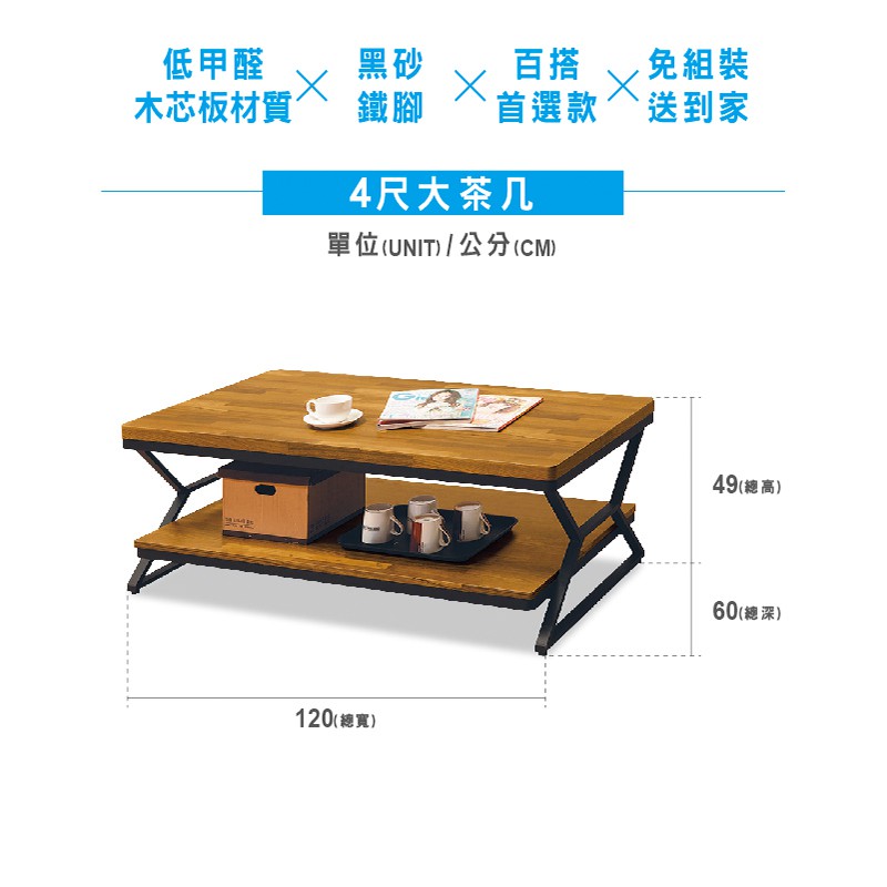 ASSARI-亞希工業風4尺大茶几(寬120x深60x高49cm)