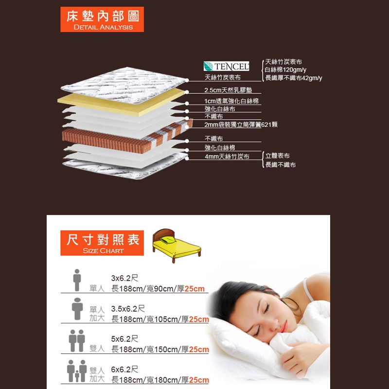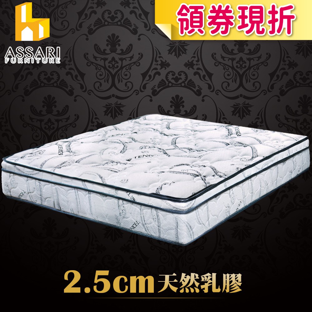 ASSARI-尊爵2.5cm乳膠天絲竹炭強化側邊獨立筒床墊- 單人3尺/單大3.5尺/雙人5尺/雙大6尺