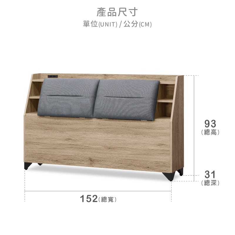 ASSARI-佐久間收納插座床頭箱-雙人5尺/雙大6尺