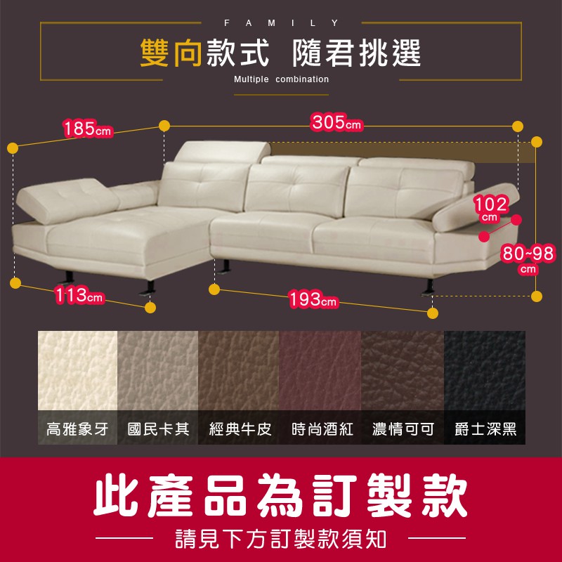 ASSARI-帝摩斯大L型半牛皮沙發-面左/面右