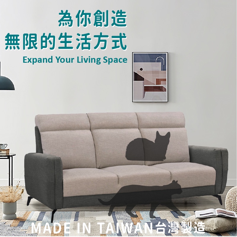 ASSARI-麥拉倫舒適靠背三人座貓抓皮沙發