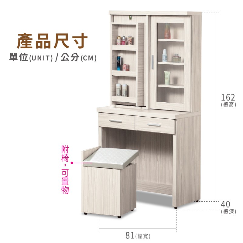 ASSARI-霍爾白梣木2.7尺旋轉化妝桌椅組(寬81x深40x高162cm)