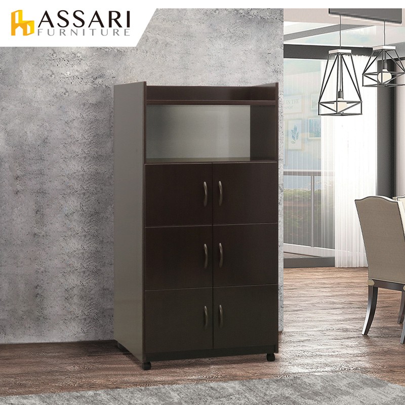 ASSARI-防潮防蛀塑鋼緩衝六門開放碗盤櫃-附輪(寬64x深42x151cm)