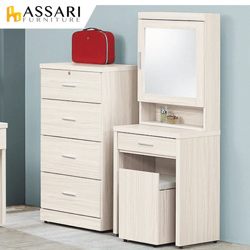 ASSARI-霍爾白梣木2尺化妝桌椅組(寬60x深40x高155cm)