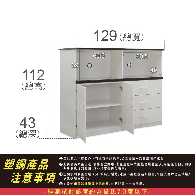 ASSARI-防潮防蛀塑鋼緩衝二拖盤電器櫃(寬129x深43x高112cm)