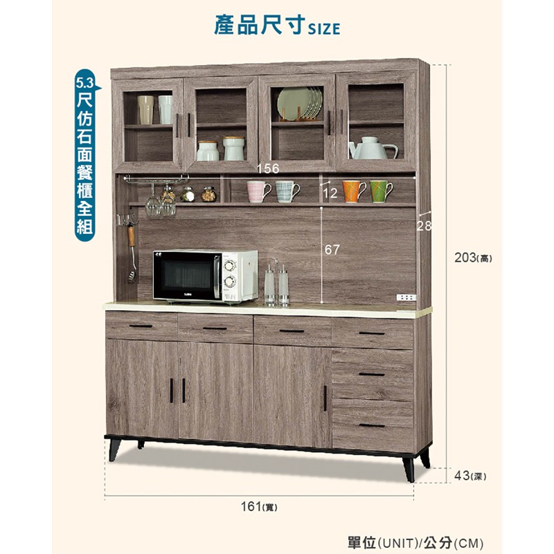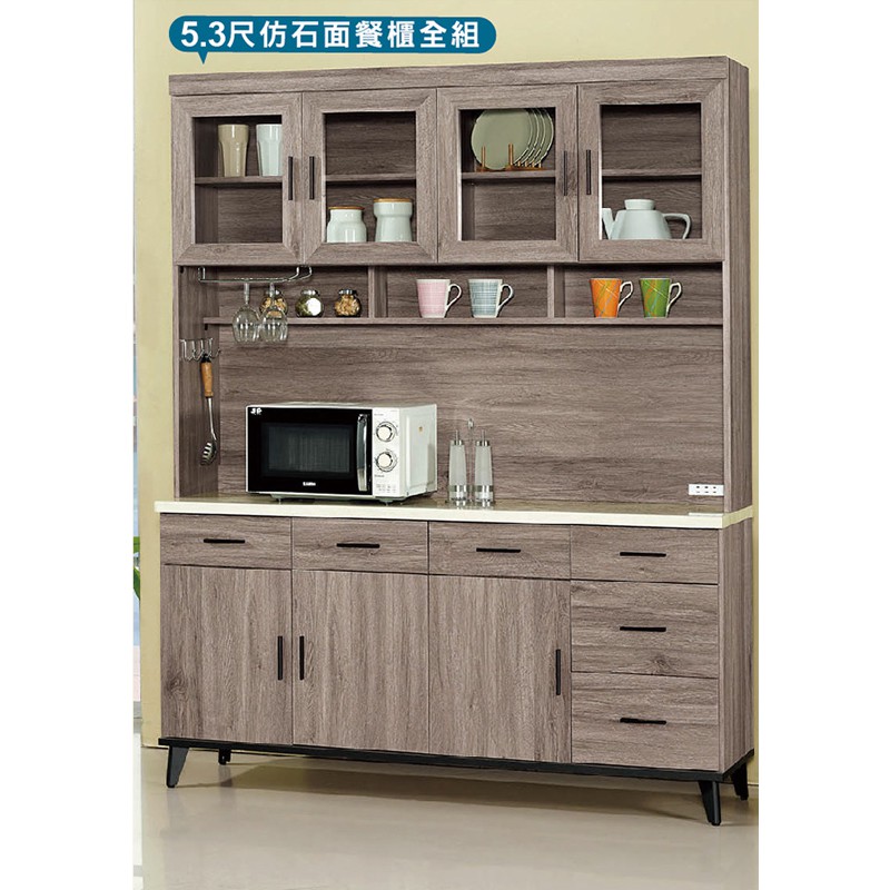 ASSARI-麥汀娜5.3尺仿石面餐櫃全組(寬161x深43x高203cm)