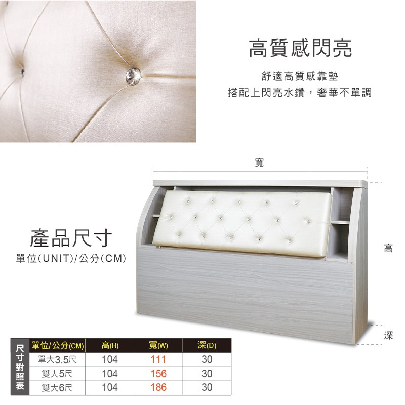 ASSARI-雪品白栓木床頭箱-單大3.5尺/雙人5尺/雙大6尺