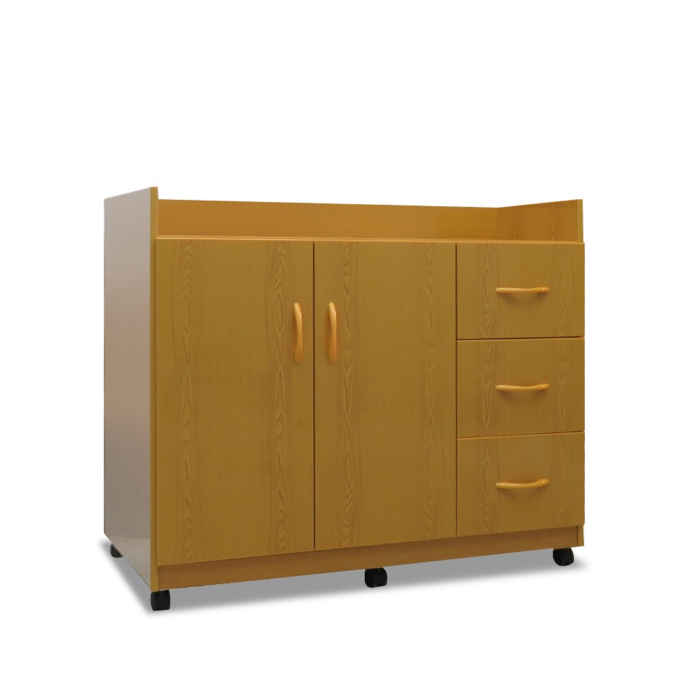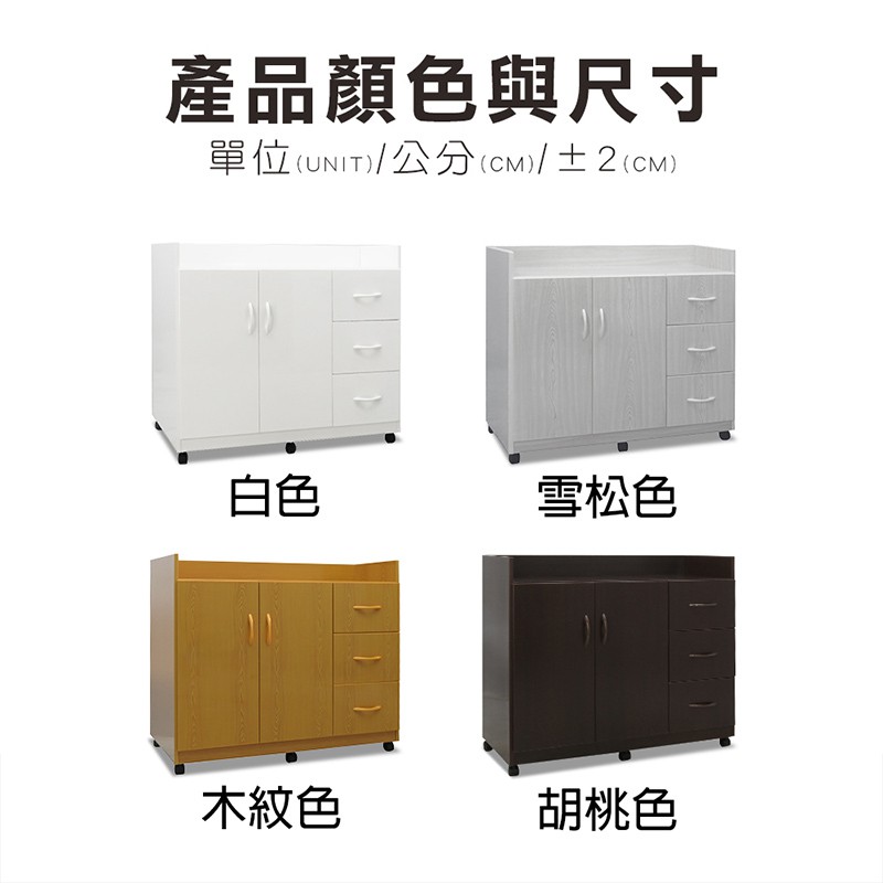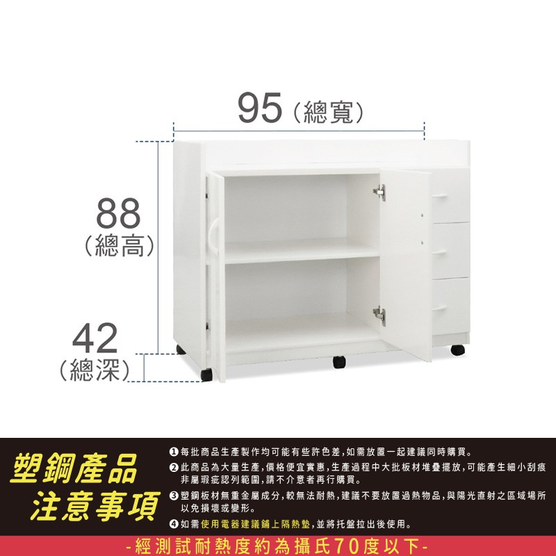 ASSARI-防潮防蛀塑鋼緩衝雙門三抽碗盤櫃-附輪(寬95x深42x高88cm)