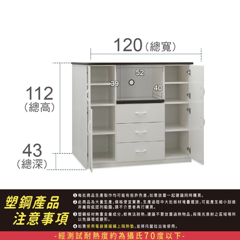 ASSARI-防潮防蛀塑鋼緩衝三抽一拖盤電器櫃(寬120x深43x高112cm)