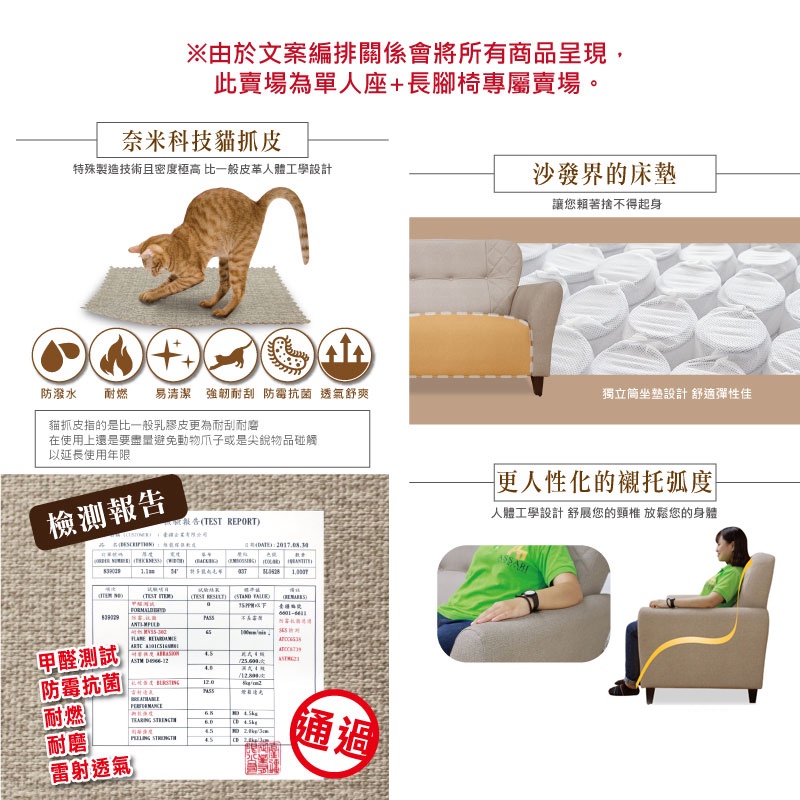 ASSARI-安井單人座貓抓皮獨立筒沙發(含長腳椅)