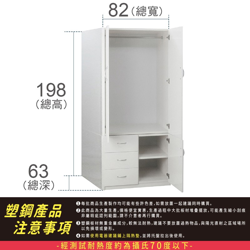 ASSARI-防潮防蛀塑鋼2.7尺緩衝三門附抽衣櫃(寬82深63高198cm)