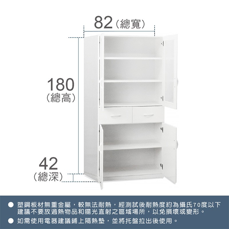 ASSARI-防潮防蛀塑鋼緩衝四門二抽高碗盤櫃(寬82x深42x180cm)