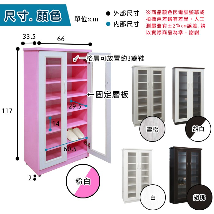 ASSARI-水洗塑鋼2.2尺緩衝雙門鞋櫃(寬66深33高117cm)