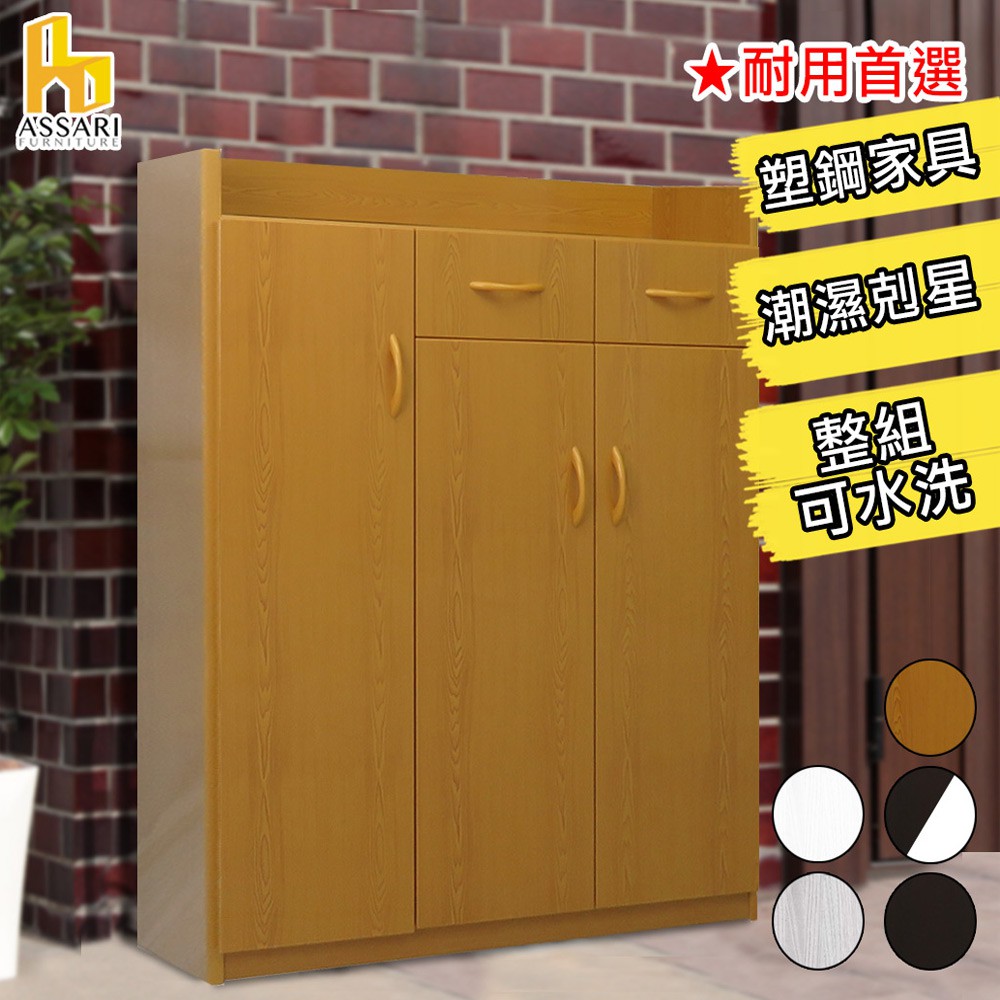 ASSARI-水洗塑鋼3尺緩衝二抽三門鞋櫃(寬95深31高127cm)