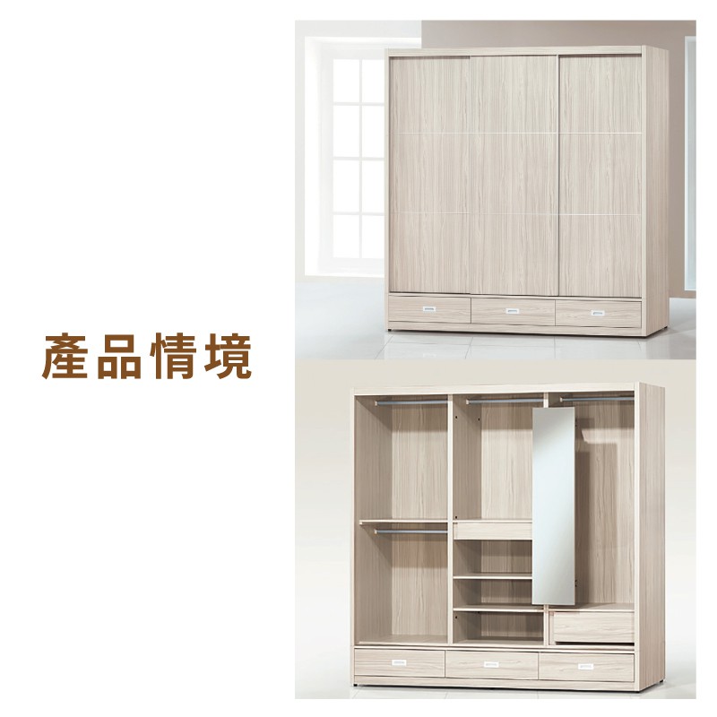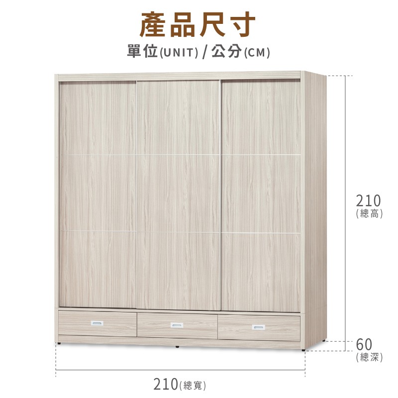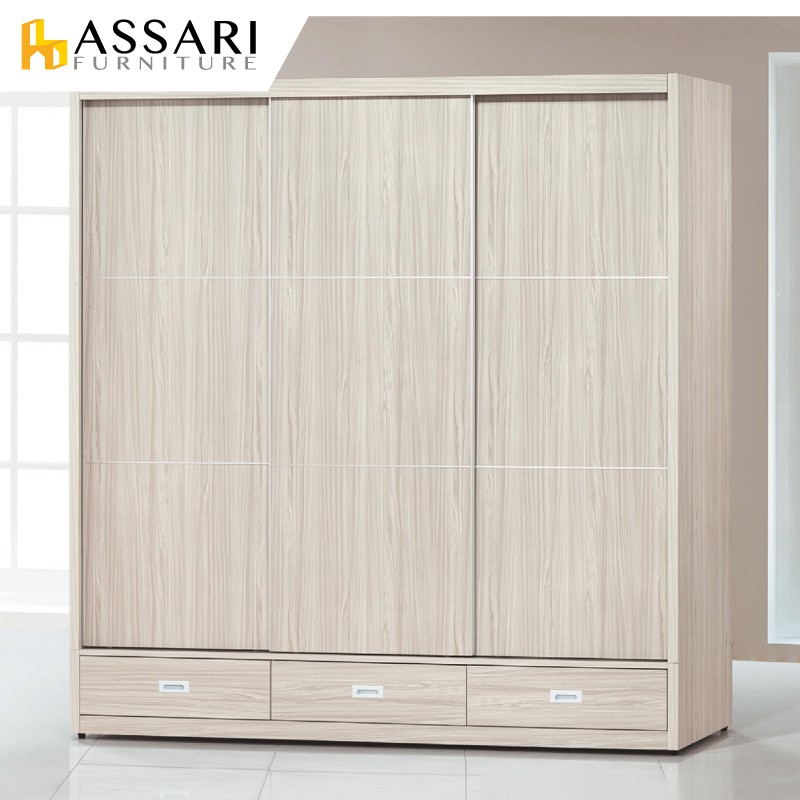 ASSARI-霍爾白梣木7X7尺下三抽推門衣櫃(寬210x深60x高210cm)