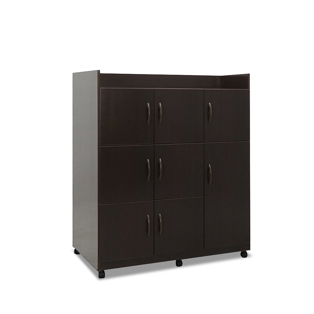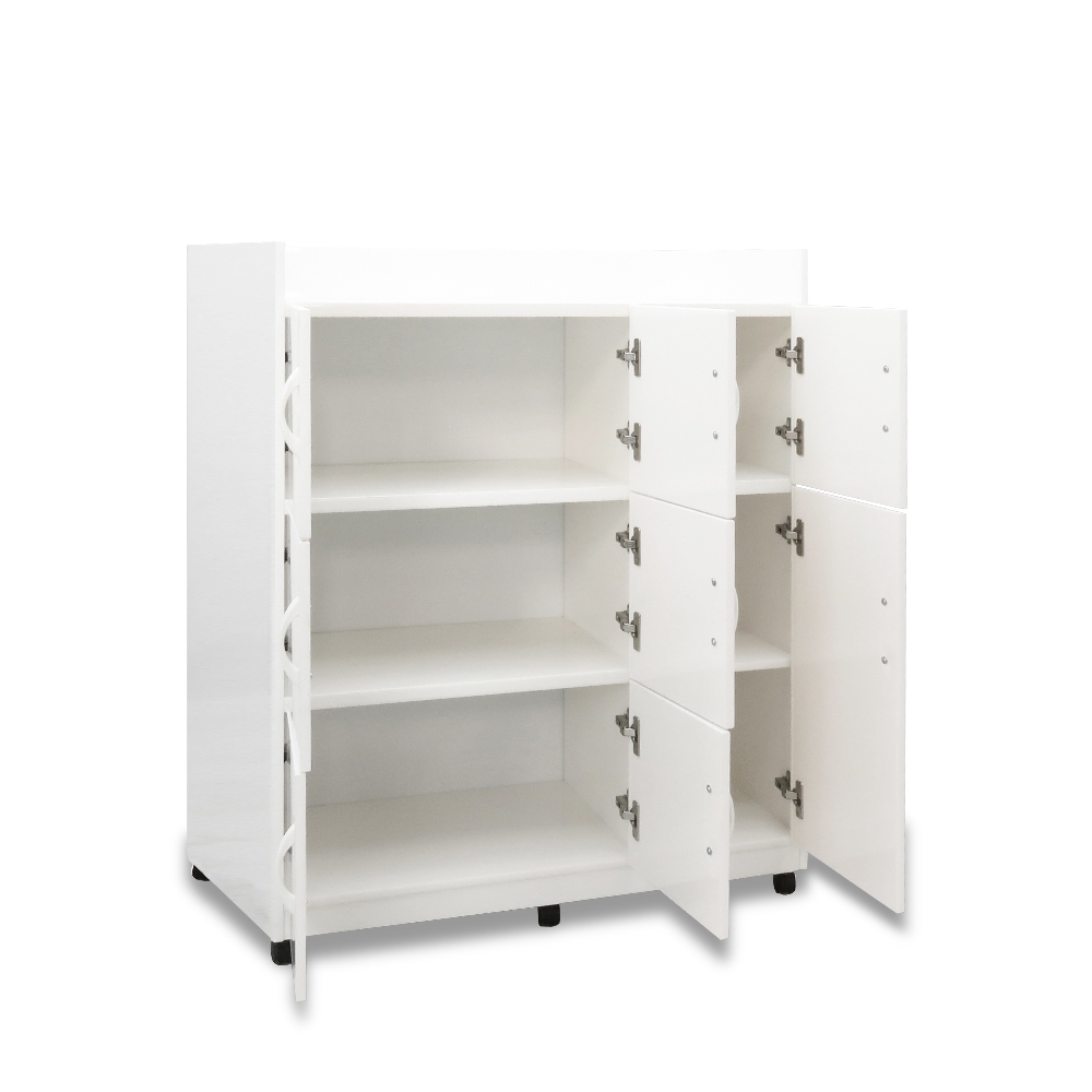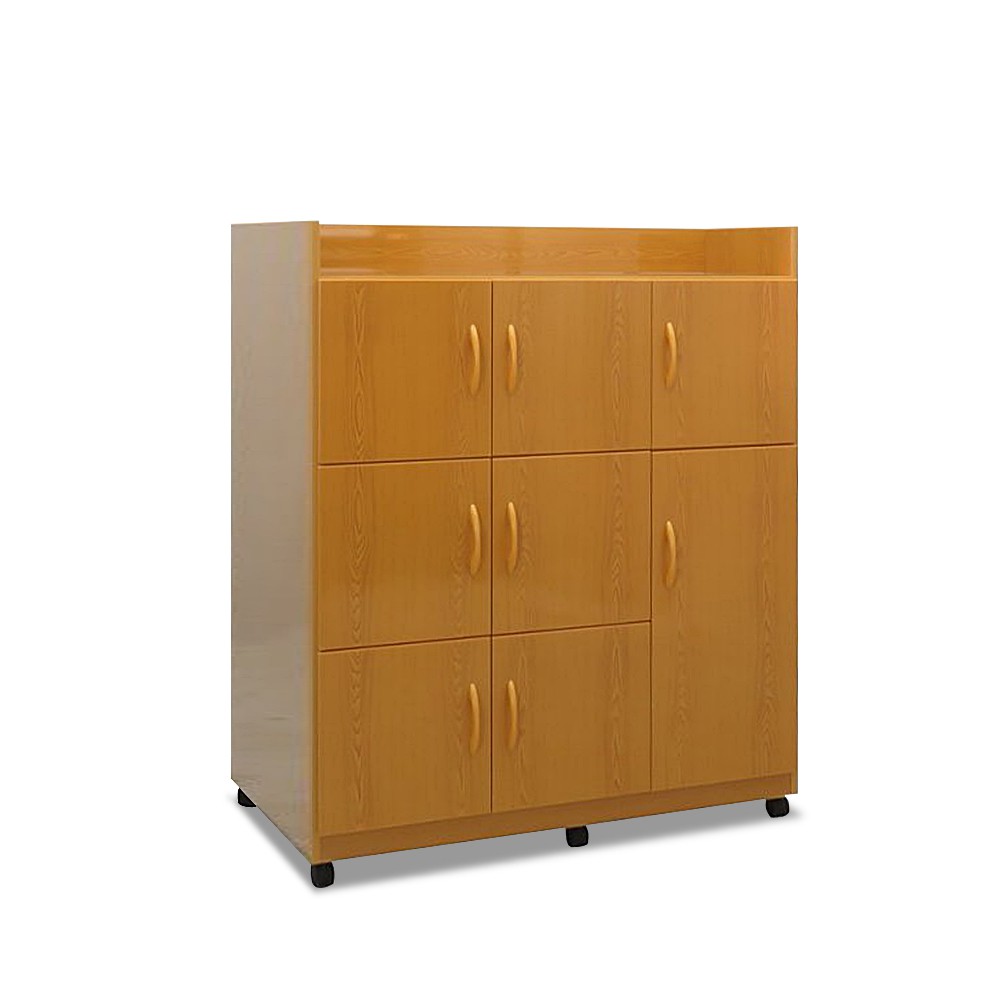 ASSARI-防潮防蛀塑鋼緩衝3尺八門碗盤櫃-附輪(寬95x深42x高119cm)
