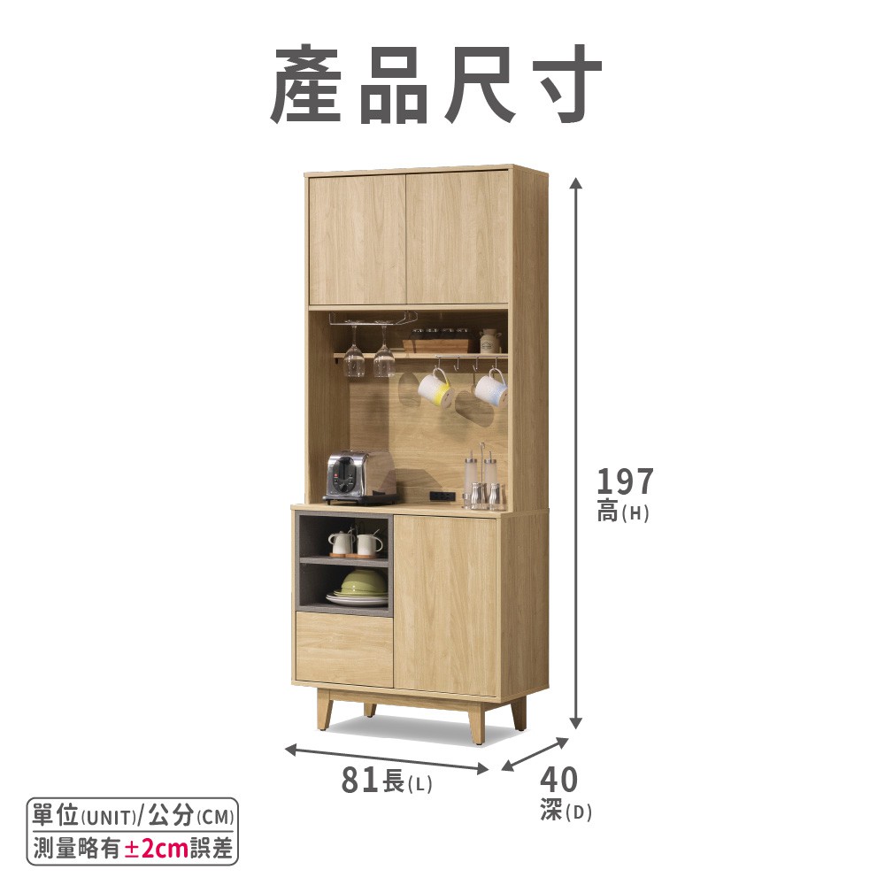ASSARI-沐光2.7尺餐櫃全組(長81x深40x高197cm)