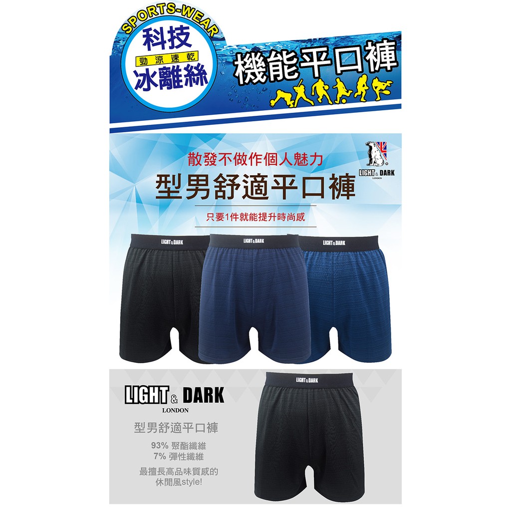 【LIGHT&DARK】- 1件組- 勁涼速乾科技冰離絲機能平口褲(黑色)