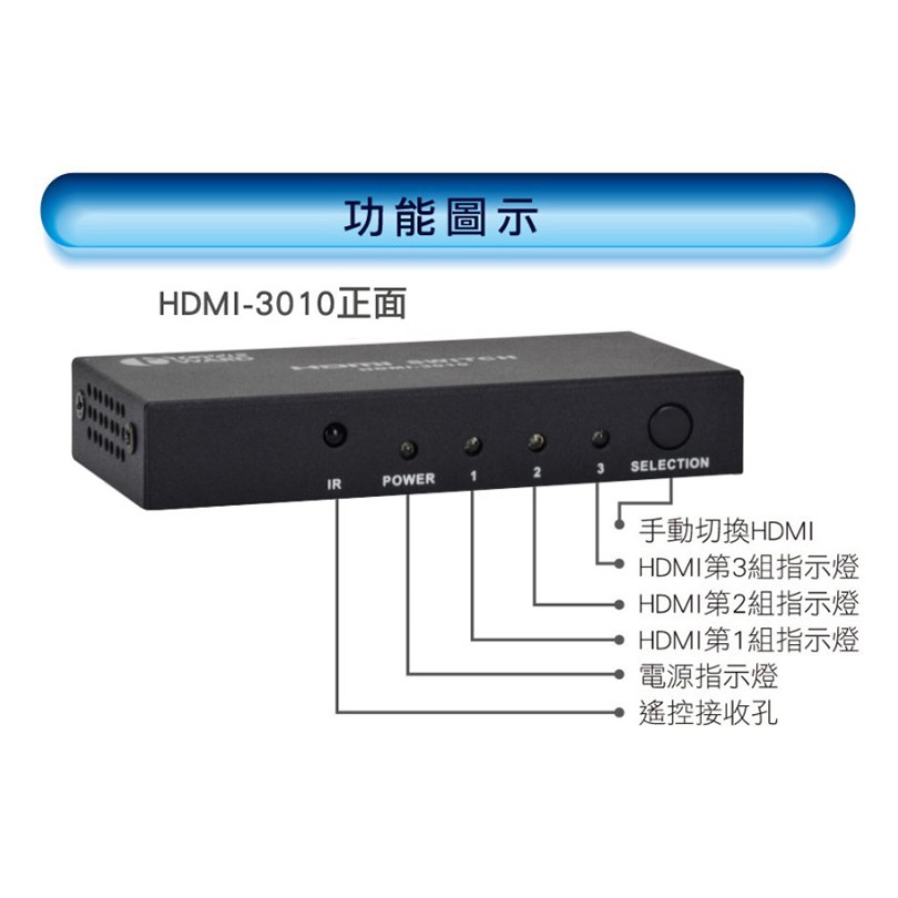 大城科技 HDMI 切換器 三進一出 3進1出 HDMI-3010