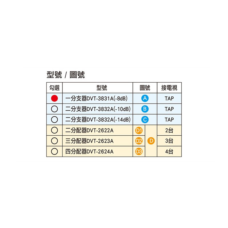 大城科技 電視一分支器 DVT-3831A-8dB 分支器 分歧器 保護迴路