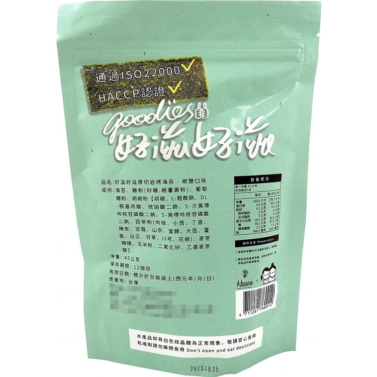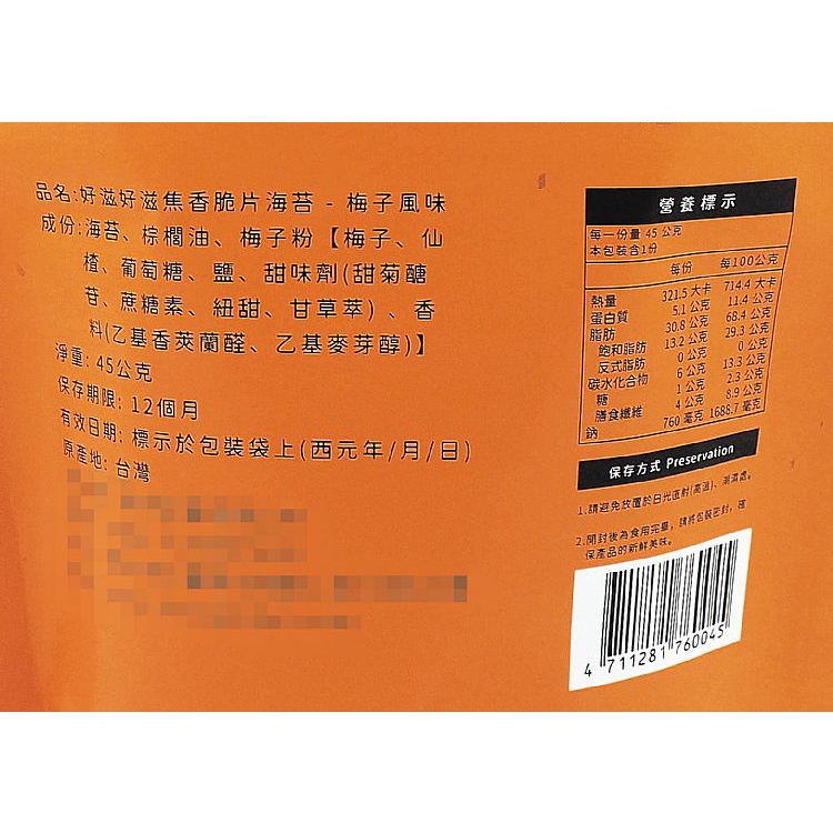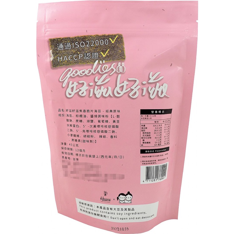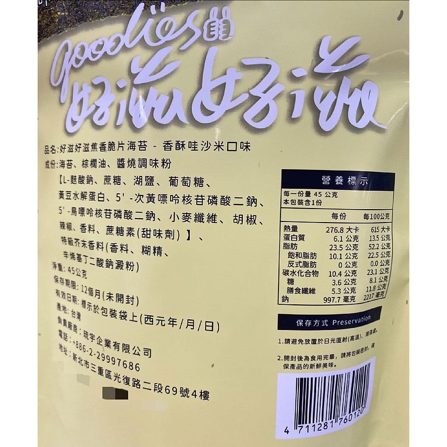 好滋好滋 焦香脆片海苔/厚切岩烤海苔45g 款式可選 零食 宵夜解饞 非油炸 素食可用 海苔【小三美日】DS008996