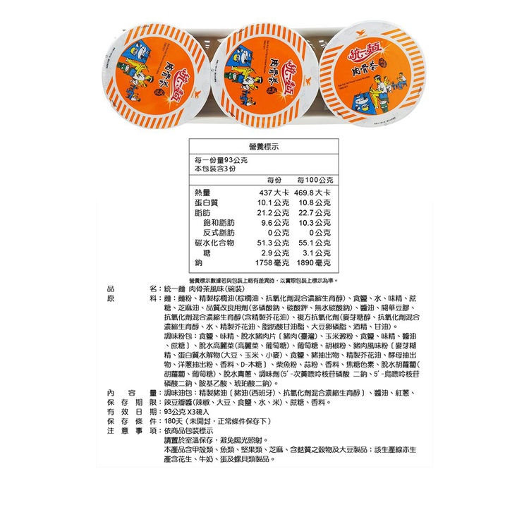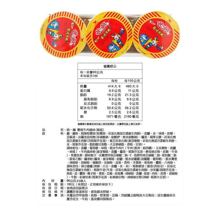統一 統一麵(肉燥特大號/蔥燒牛肉/鮮蝦/肉骨茶風味)碗裝3入 款式可選【小三美日】 DS008025