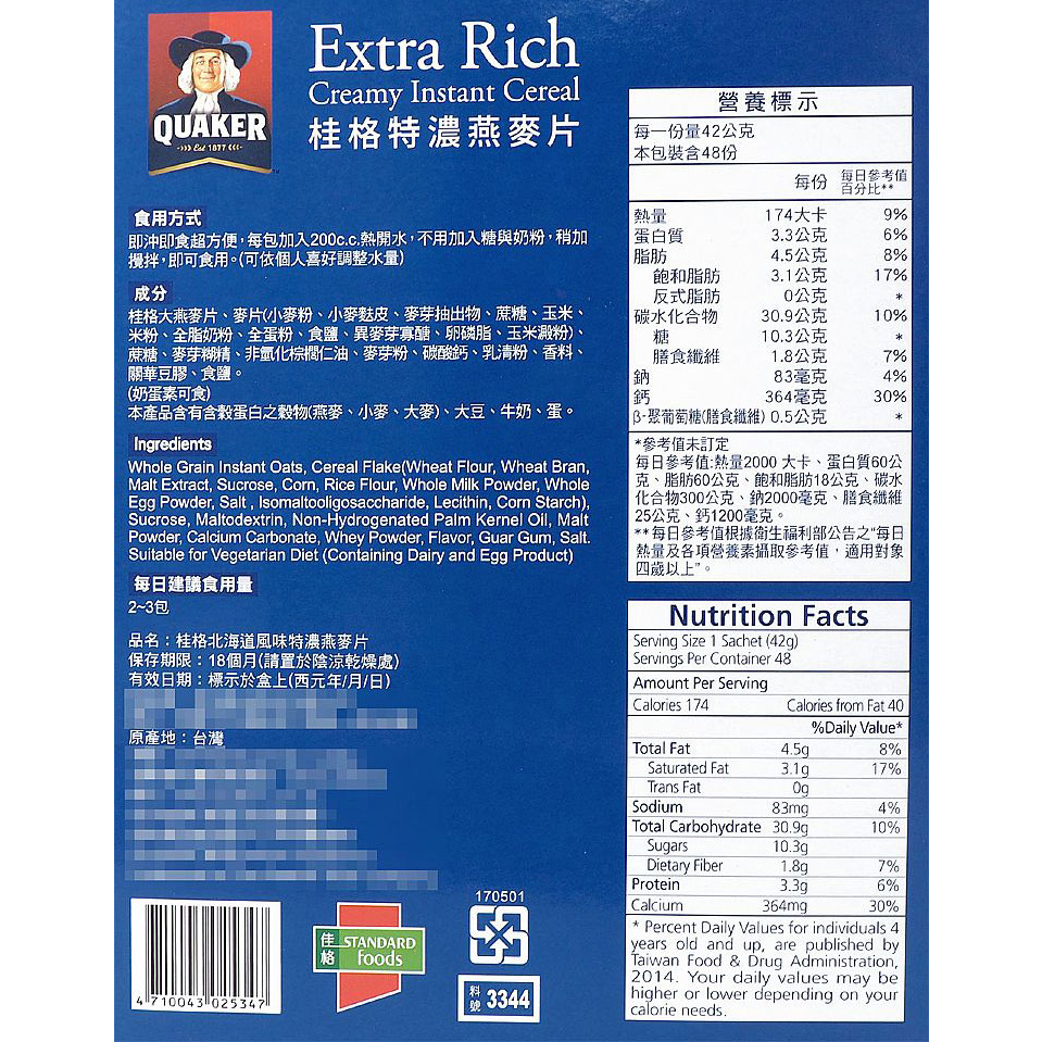 QUAKER 桂格 北海道風味特濃燕麥片(42g) 好市多COSTCO熱銷【小三美日】DS012651