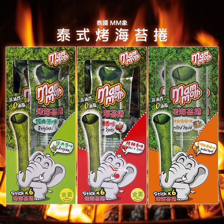 泰國 MM象 泰式烤海苔捲 (18g) 泰國海苔 零食 零嘴 追劇 下午茶 野餐 團購 素食 【小三美日】D603312