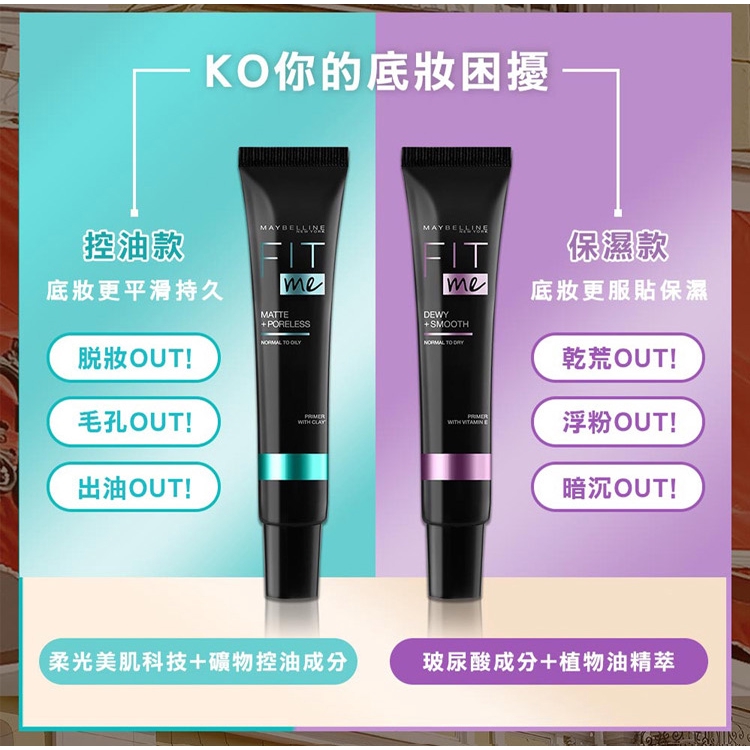 MAYBELLINE 媚比琳 FIT ME反孔特霧控油/水光奇蹟保濕 妝前乳(30ml)【小三美日】D773153