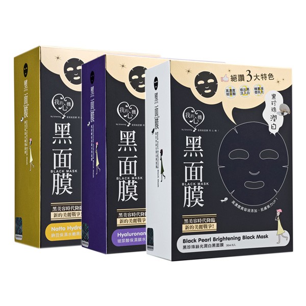 我的心機 黑面膜系列(玻尿酸保濕/納豆/黑珍珠/蝸牛/仙人掌/七合一/淨化調理)盒裝8片入【小三美日】D044016