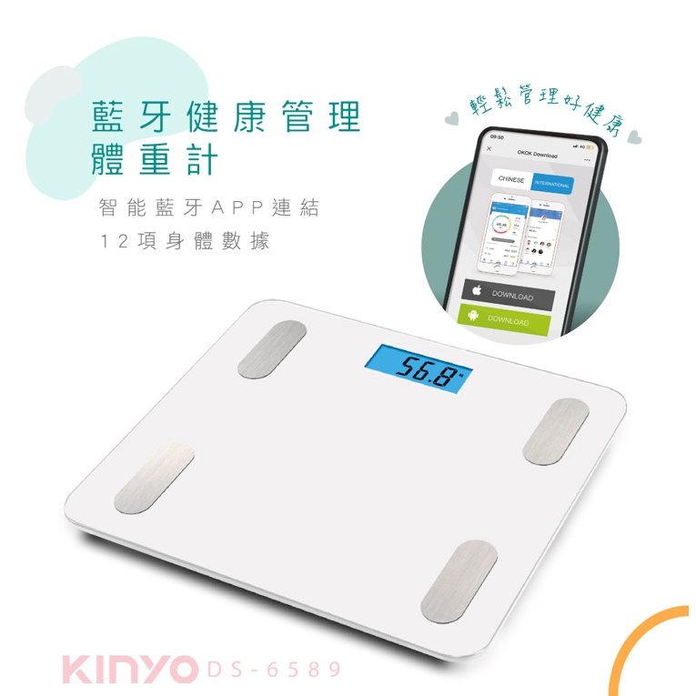 KINYO 藍牙健康管理體重計(DS-6589)1入【小三美日】海外禁售 D449673