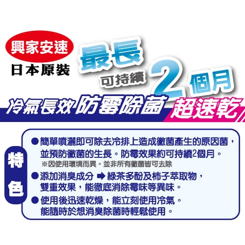 日本 興家安速 冷氣長效防霉除菌噴霧(350ml)【小三美日】空運禁送 D581518