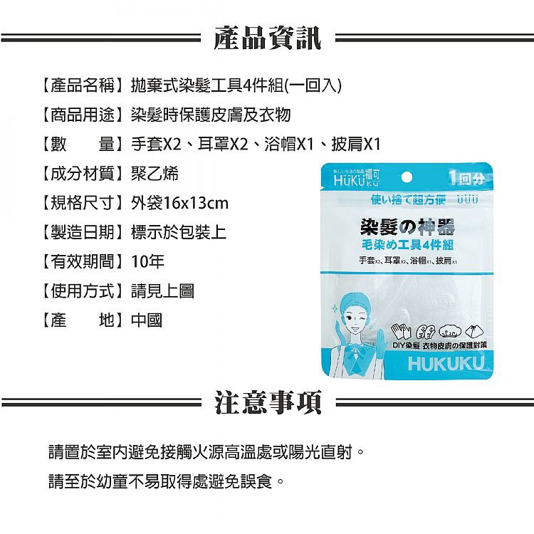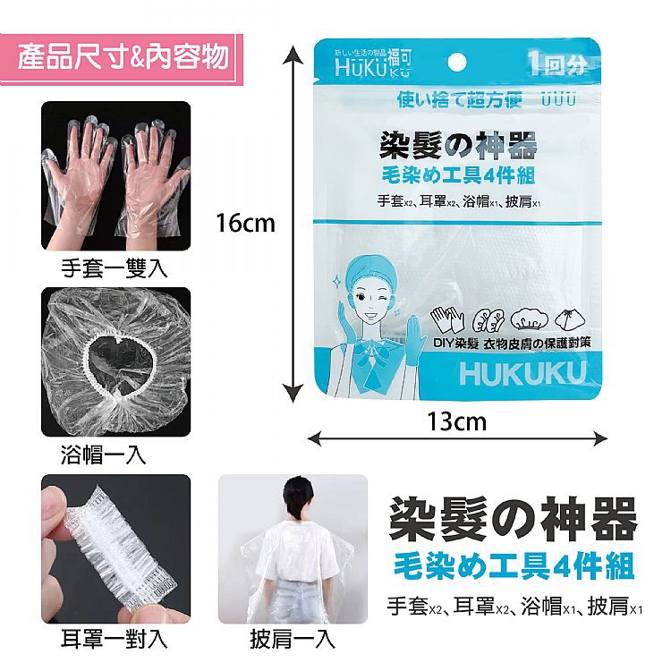 HUKUKU 福可 拋棄式染髮工具4件組(一回入)【小三美日】DS002588