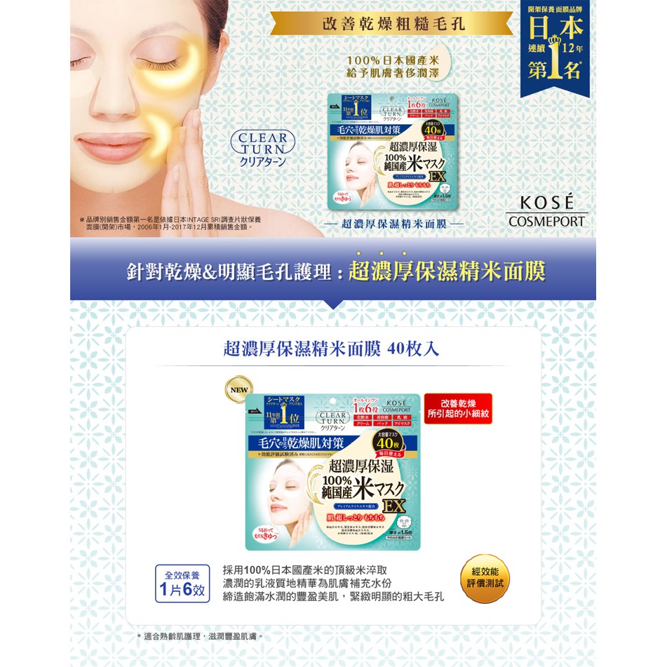 KOSE 高絲 純米精華濃厚保濕面膜(40枚入)【小三美日】D390612