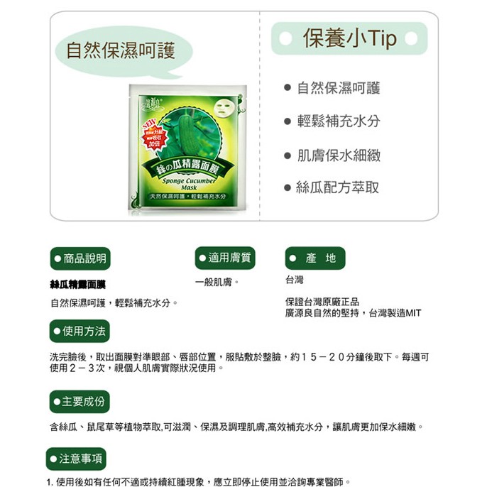 廣源良 絲瓜精露面膜升級版(單片入)【小三美日】D062360