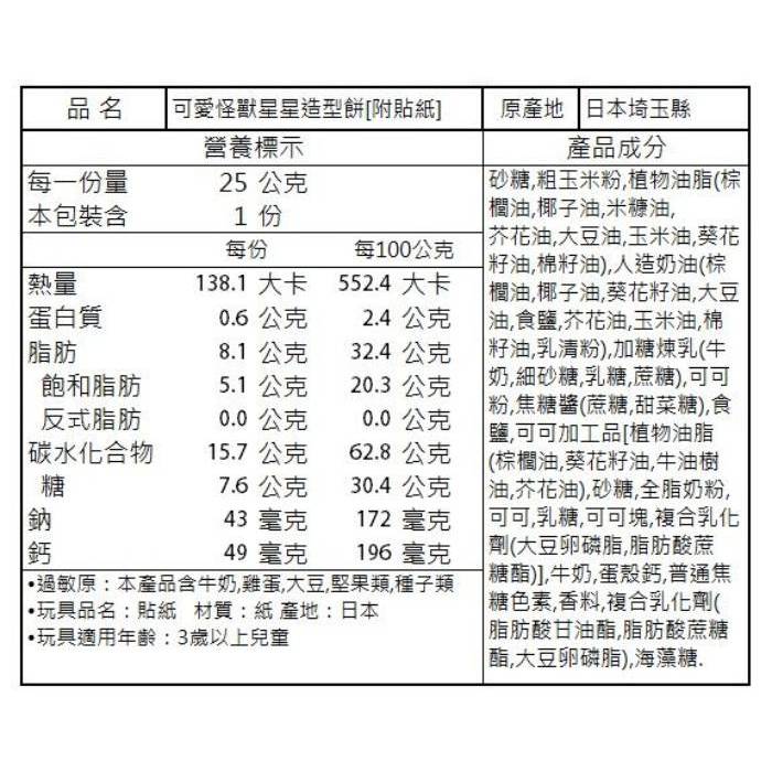Tohato 東鳩 可愛 怪獸 星星 造型餅(25g) 蠟筆小新 餅乾 零食 巧克力 零嘴【小三美日】D882066