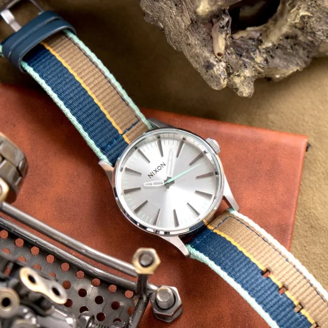 NIXON 極簡 SENTRY 38 海軍藍 條紋 尼龍錶帶 男錶 女錶 手錶 時尚 穿搭 配件 A426-2083