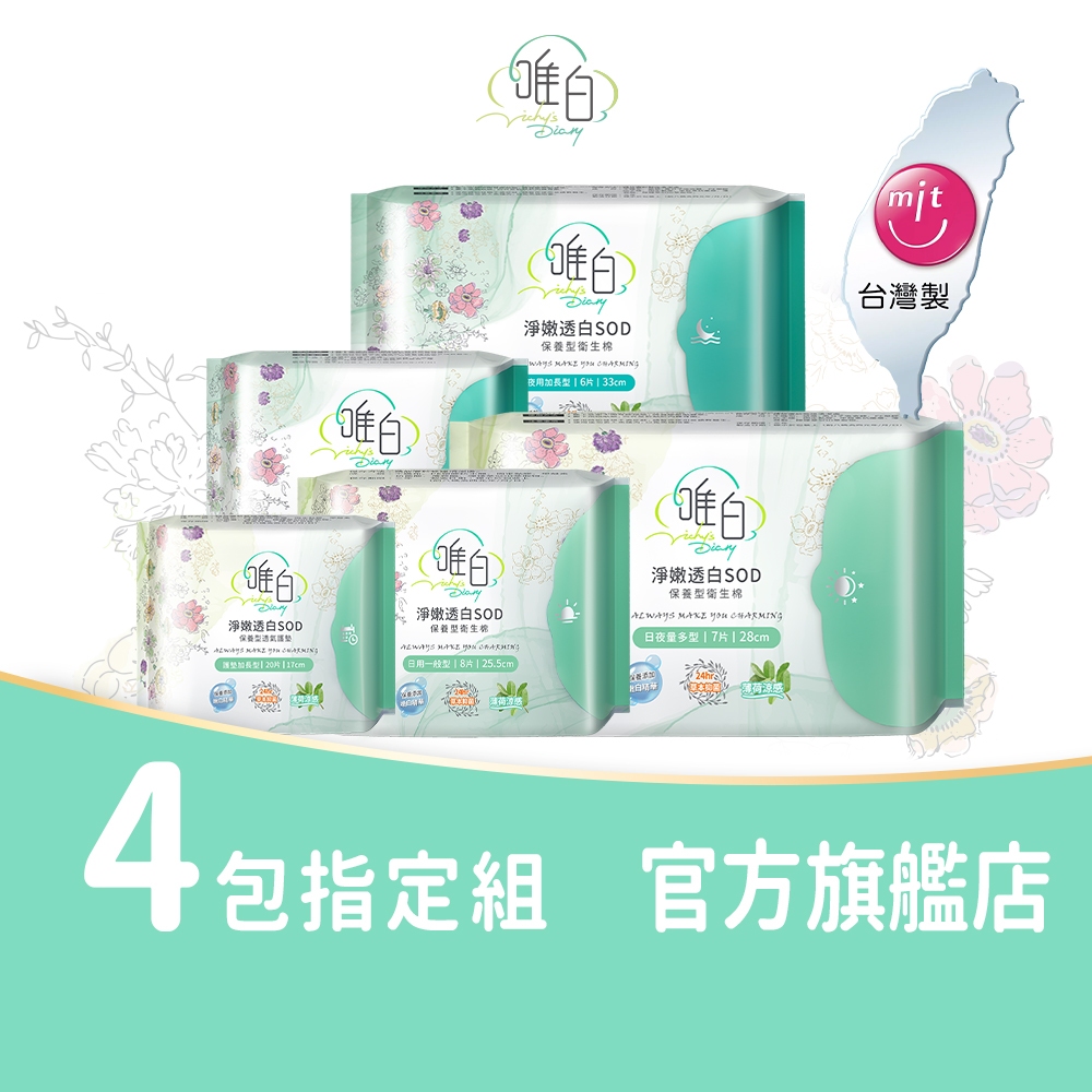 【唯白V.D】淨嫩透白SOD草本抑菌衛生棉4入組(MIT台灣製/清新檸檬草/草本涼感/54倍瞬吸)